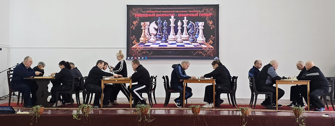 В актовом зале нашего социального пансионата состоялось одно из самых ожидаемых событий года — ежегодный шахматно-шашечный турнир. Это мероприятие традиционно объединяет мудрость, стратегическое мышление и волю к победе.